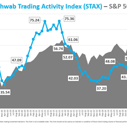 The Schwab Trading Activity Index™ (STAX) increased to 49.22 in November, up from its score of 48.37 in October. The only index of its kind, the STAX is a proprietary, behavior-based index that analyzes retail investor stock positions and trading activity from Schwab’s millions of client accounts to illuminate what investors were actually doing and how they were positioned in the markets each month.
